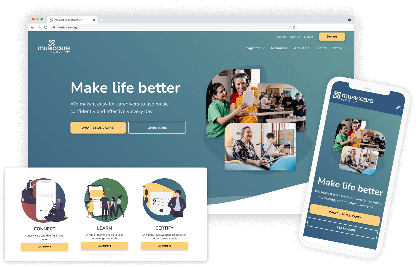 Bringing the Music Care ecosystem together in one digital home showcased how thoughtful design can unify mission and technology.